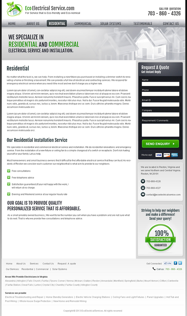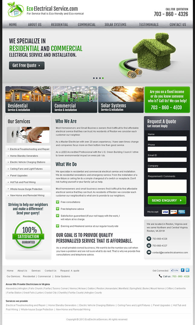EcoElectrical, Inc is a Northern Virgina based Electrical Services company, they have specialized in providing quality professional service in the DC metro area. EcoElectrical approached AvigoSystems for Search Engine Optimized custom website that portrayed a professional image and was consistent with their branding.